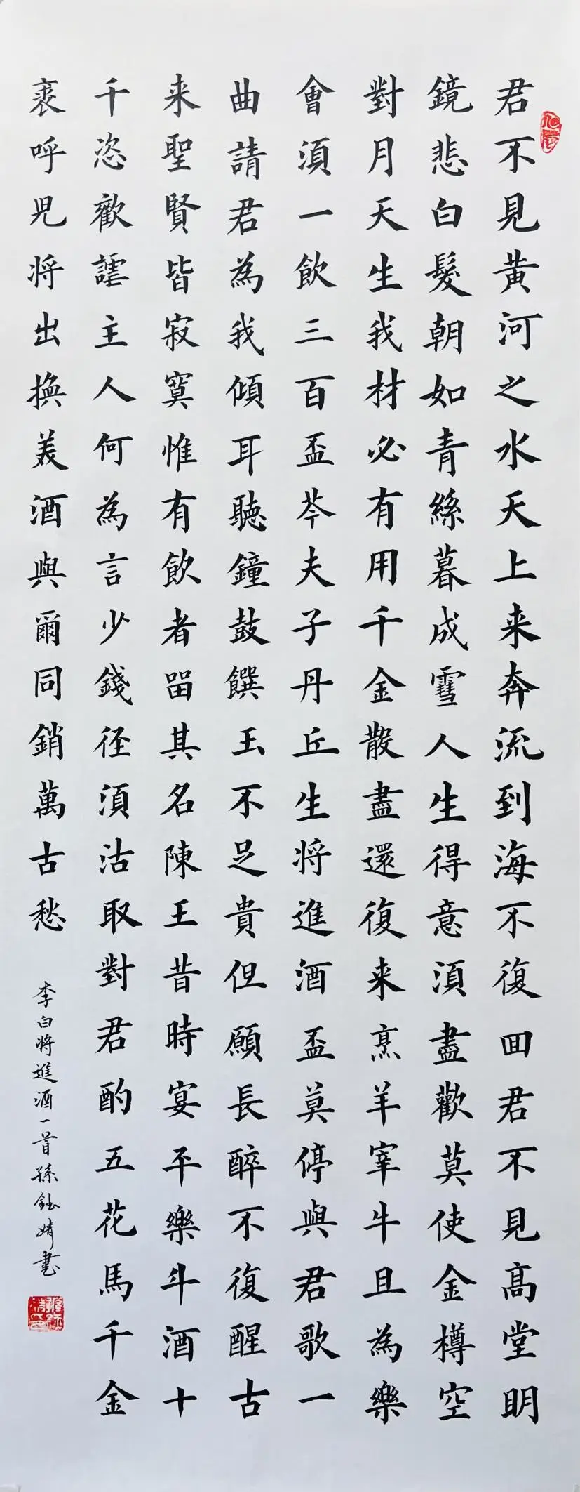 孙钰婧,字 轩邈,号 终南斋主,女,1991年生,现居古都西安。现为中国通俗文艺研究会艺术人才库书法专业高级研究员、中艺星光文化艺术平台高级会员、人民书画院会员、西安书画家协会会员、北京九州枫林书画院会员、中国书画家协会会员、中国敦煌正觉写经院院士、中波文化交流使者、全国美育标准化体系建设工作组辅导员。
