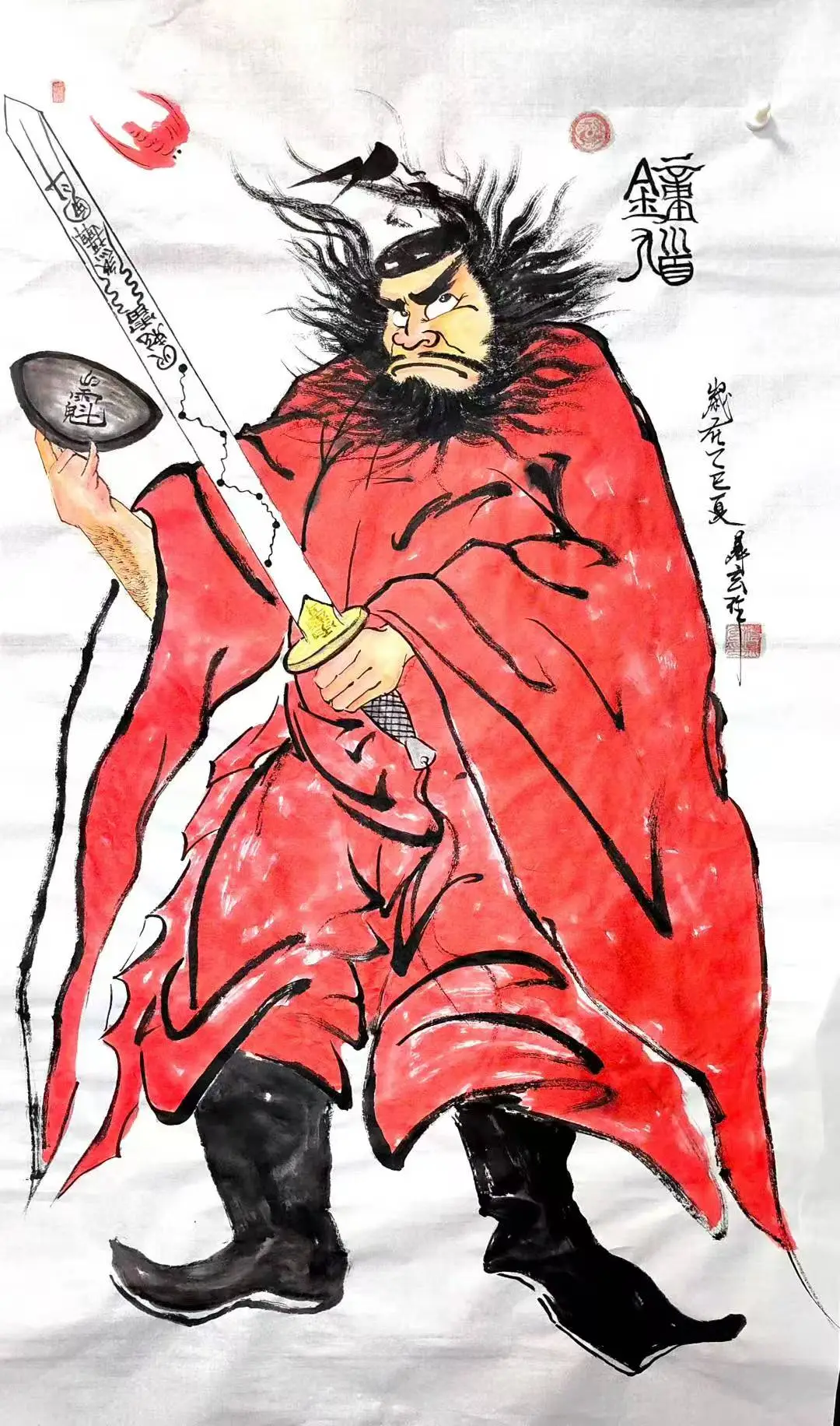 题材专精:以钟馗主题创作,笔法兼具写意精神与写实功底
