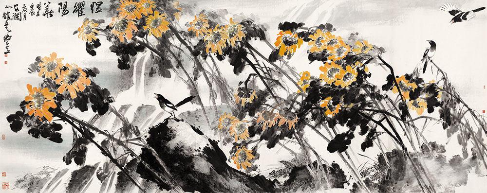 以自然为师,提倡传统经典文化,倡导深入生活、写生创作相结合的艺术主张;一贯坚持对诗词、书法、篆刻的学习借鉴,创造出独具风格特点、生意迥出的大写意花鸟画艺术作品。