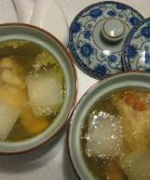 原料:鸡块(翅根)、白萝卜 配料:姜、当归、枸杞 调料:盐 做法 1、鸡块洗净,姜去皮切片,白萝卜去皮切块儿。 2、把所有食材加三颗枸...