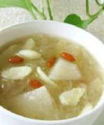 原料:梨个,百合,银耳,枸杞,冰糖。 做法: 1、梨去皮去核切块,百合剥开洗净,枸杞用清水冲洗干净; 2、银耳用清水浸泡2小时,泡开后...