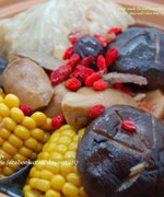 材料:十全大补帖1包,水9碗,姜片3片,生香菇6朵,杏鲍菇2朵,大头菜1/4颗,豆皮1碗,玉米1根,冻豆腐1碗,山药1碗,高丽叶半颗,麻油少...