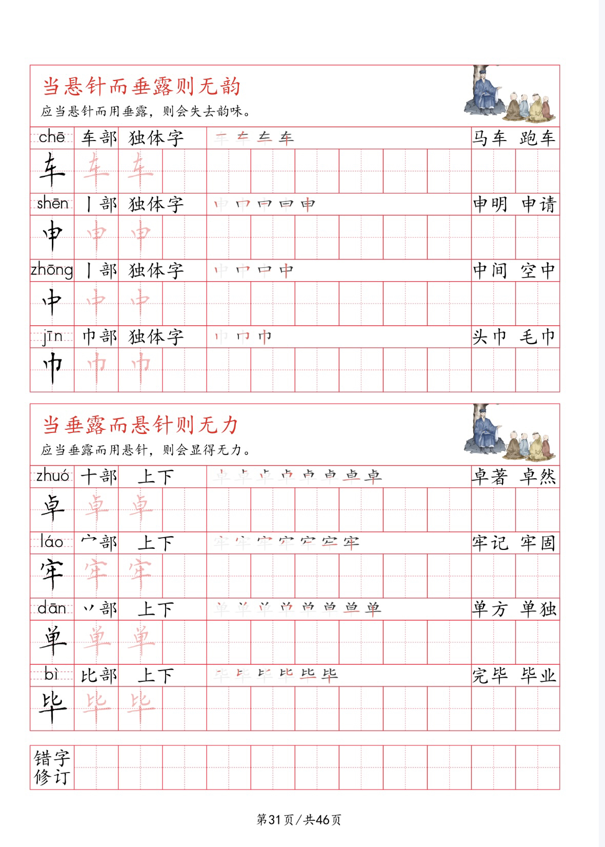 汉字结构专项练习硬笔书法入门基础临摹字帖28页每日打卡田字格