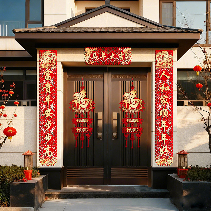 马年对联2026新款农村大门装饰门贴春节新年春联过年福字植绒高端