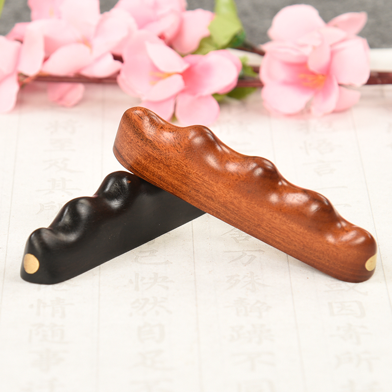 文房用具毛笔搁 笔山笔架实木铜木镶嵌红酸枝紫光檀一物两用小镇