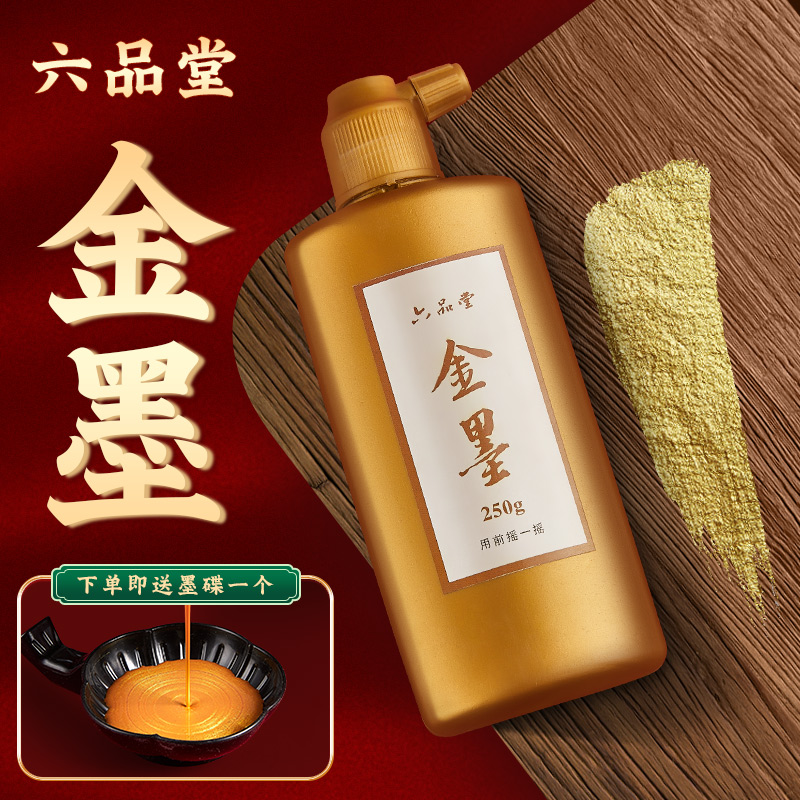 六品堂金色墨汁写对联书法专用墨水大瓶初学者书画练字用毛笔用写春联金粉墨水速干防水国画彩墨练习金墨汁