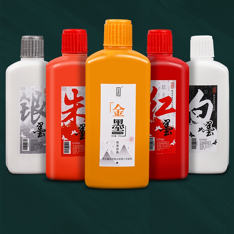 金色墨汁毛笔墨水金粉墨汁书法专用朱砂墨墨液朱墨白墨红墨银墨大容量瓶装书画国画学生用写对联纸书法专用