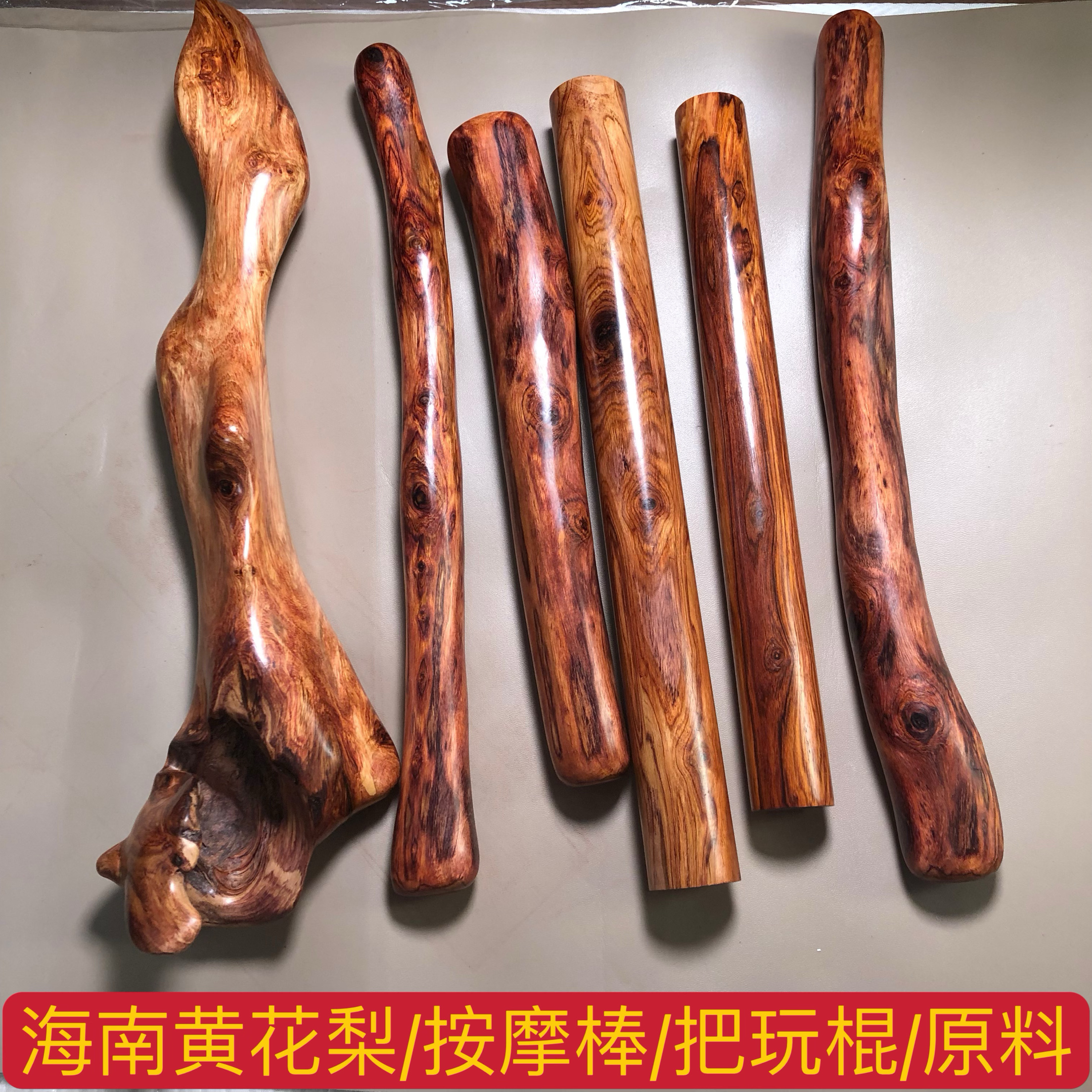正宗海南黄花梨按摩棒刮痧把玩木棍防身短棍捶背腰椎经络拍打健身