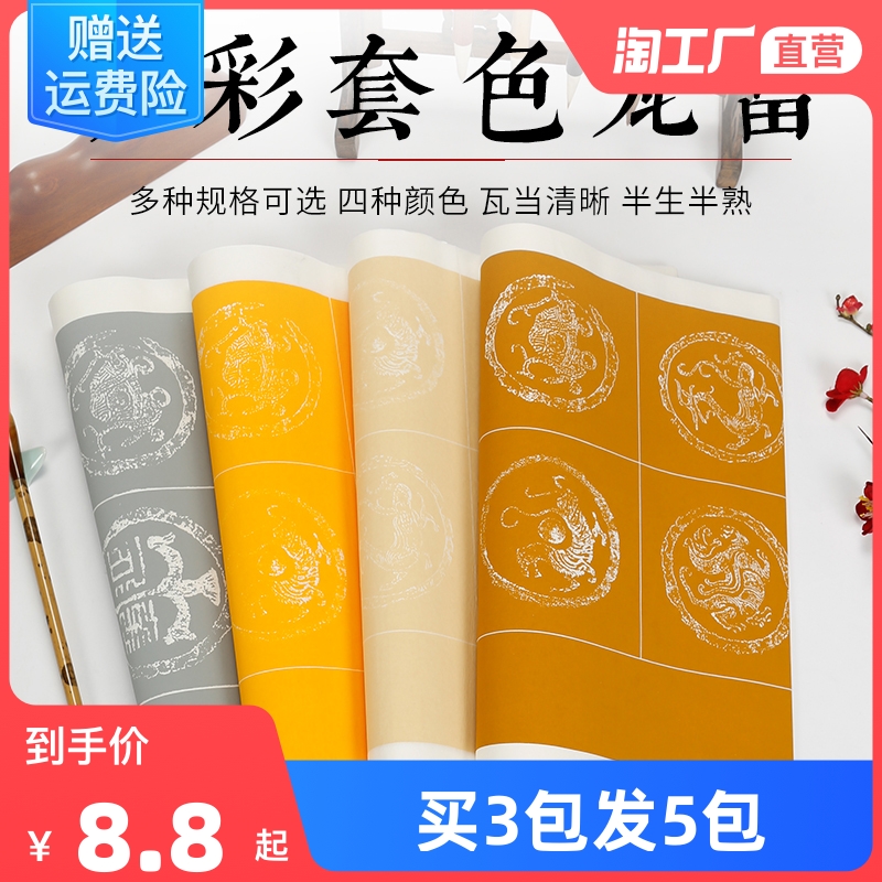 四尺四开对开粉彩半生半熟瓦当宣纸古诗词格子纸五言七言对联宣纸书法作品纸考级纸比赛创作专用方格纸