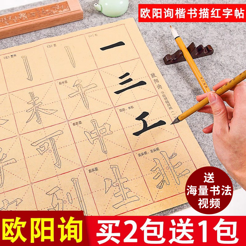 欧阳询欧体楷书描红毛边纸米字格半生熟宣纸毛笔字帖入门临摹欧体正楷初学者书法训练练习纸竹浆毛边加厚学生