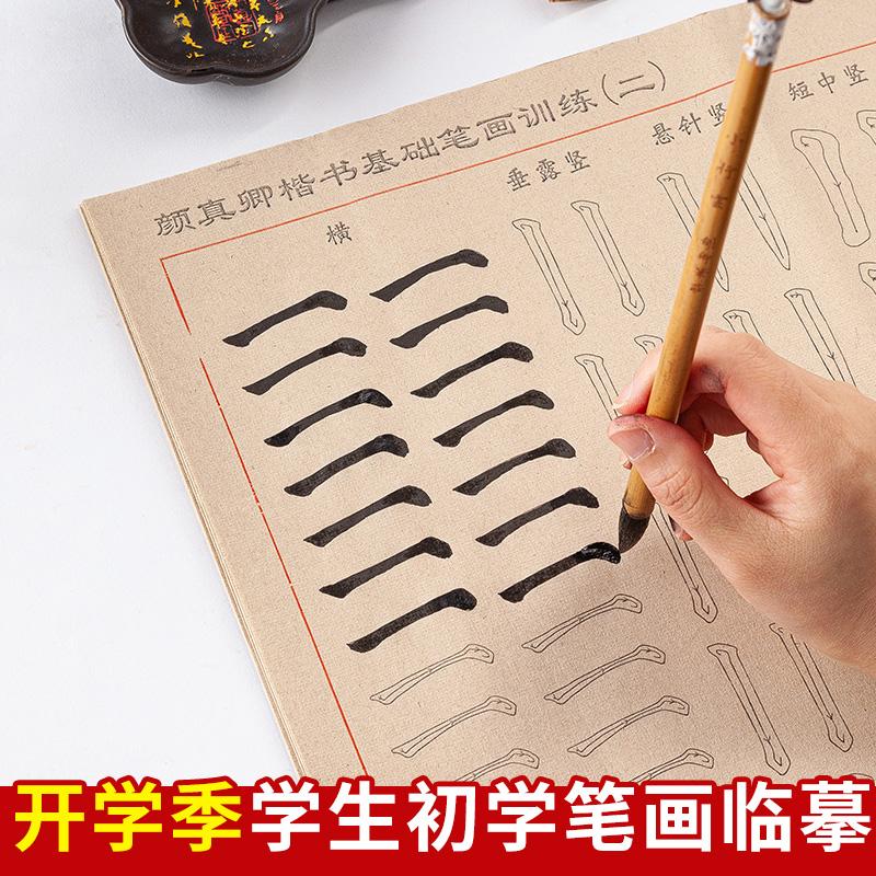 小学生初学者入门颜体楷书笔画毛笔字帖练字专用颜真卿中楷描红软笔临摹儿童毛笔书法练字纸套装毛笔字练习纸