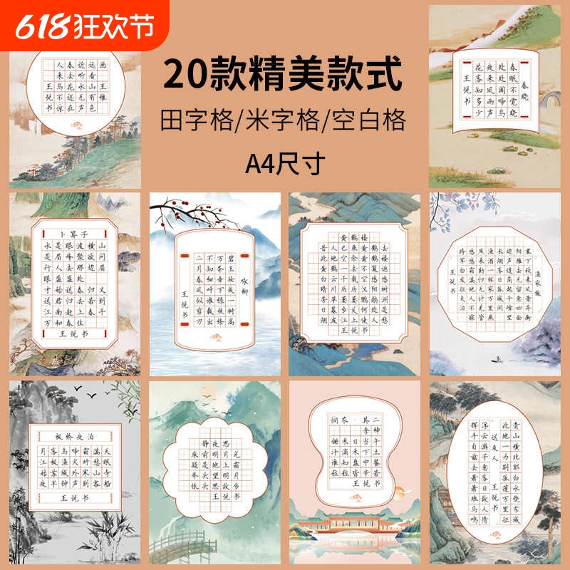 六品堂硬笔书法练习用纸作品纸a4比赛练字专用纸练字本小学生古诗词米字格田字格方格五言七言单款钢笔楷书