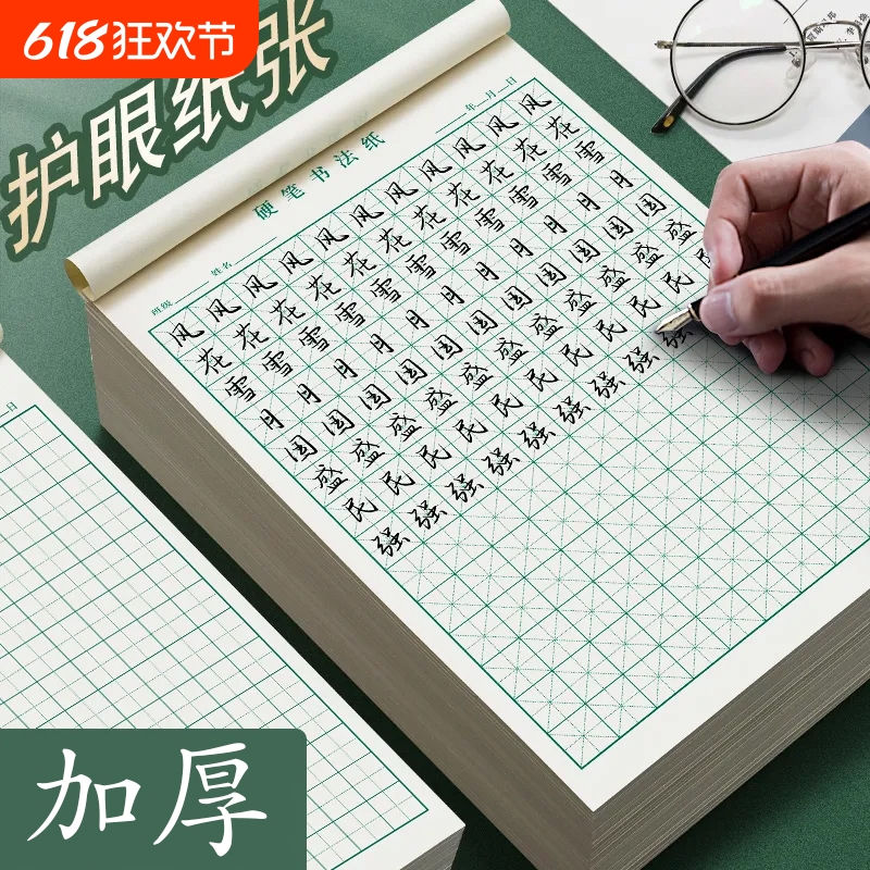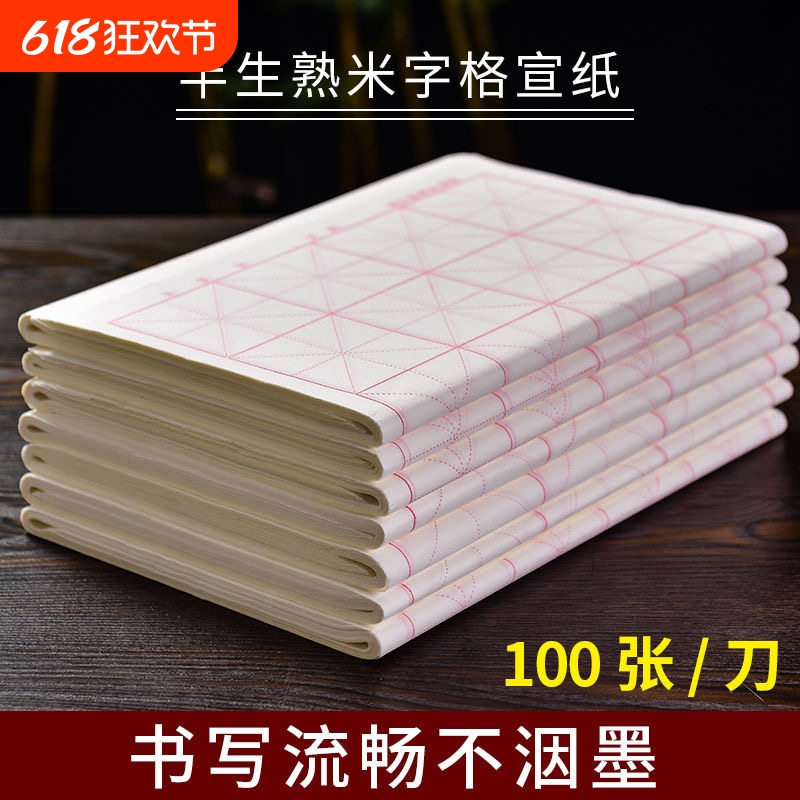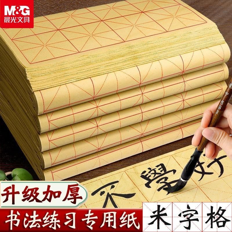 晨光毛边纸加厚米字格宣纸书法专用纸初学者练字书法毛笔字练习纸批发半生半熟竹纸书法纸带格子书法练习用纸