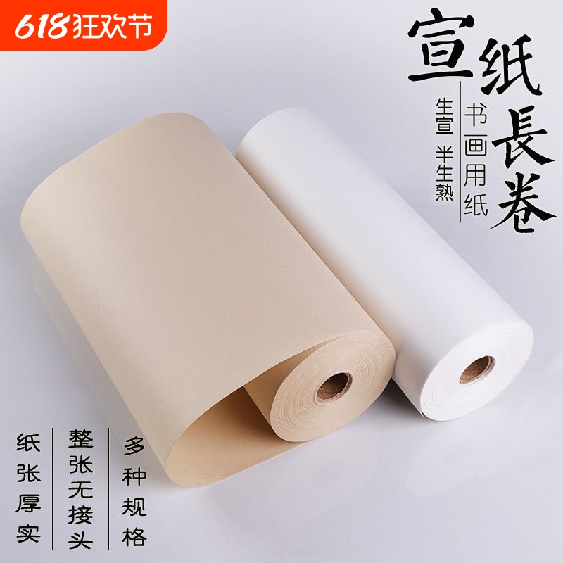 宣纸长卷百米生宣纸卷装黄色半生半熟国画工笔画毛笔书法练字专用100米仿古白色练习用纸批发