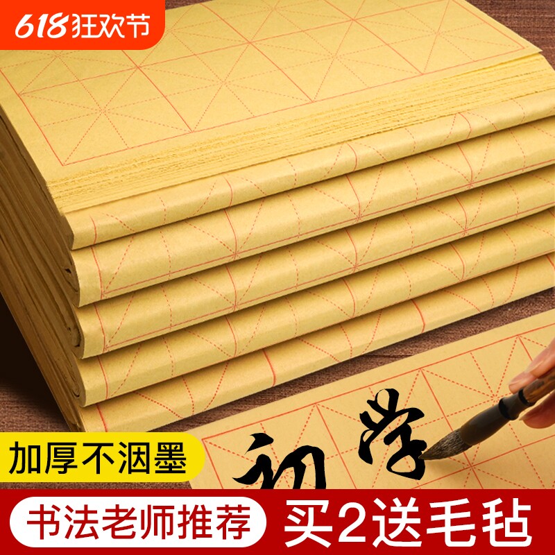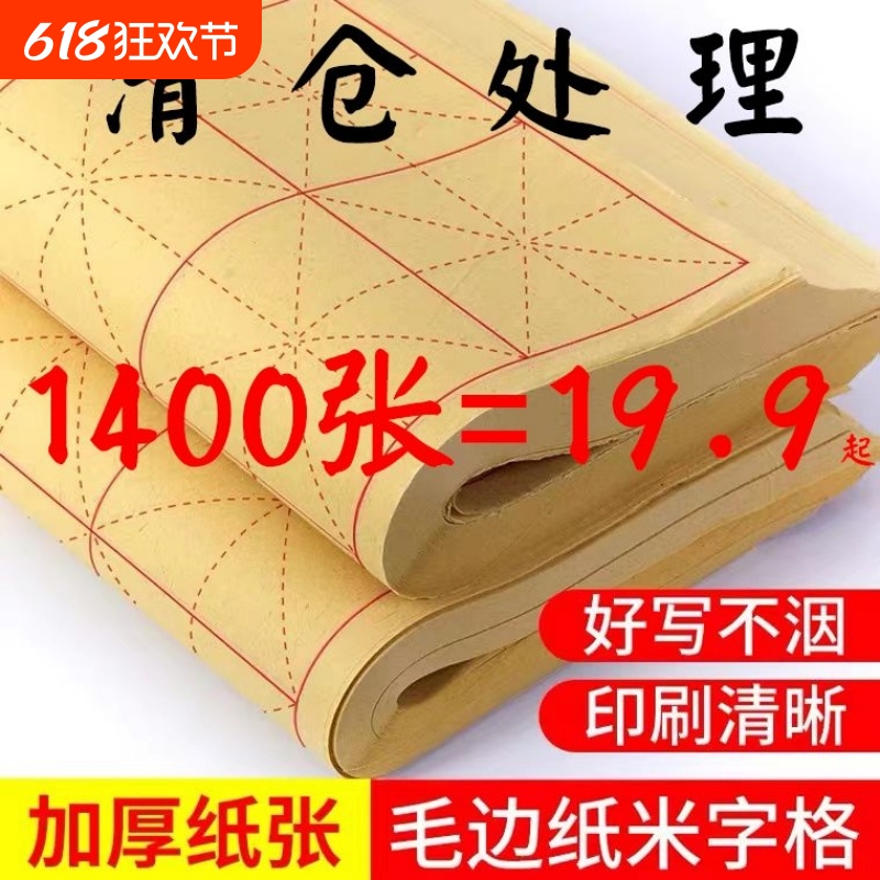 加厚米字格毛边纸半生半熟篆书毛笔字竹浆纸书法练字专用手工练习用纸宣纸初学者练习纸元书纸批发书写米子格