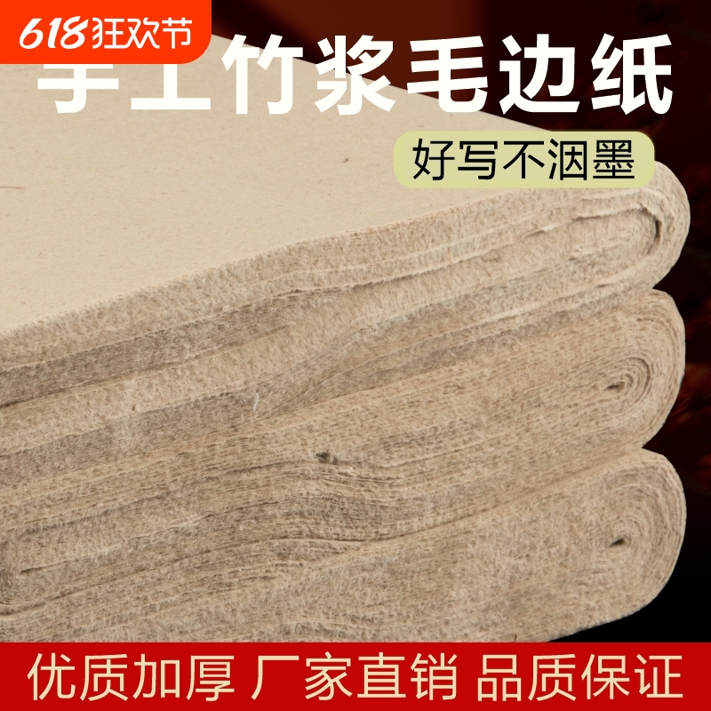 仿古毛边纸书法练习专用宣纸半生半熟无格书法专用练字六尺屏批发手工竹浆加厚作品纸初学者练毛笔字纸元书纸