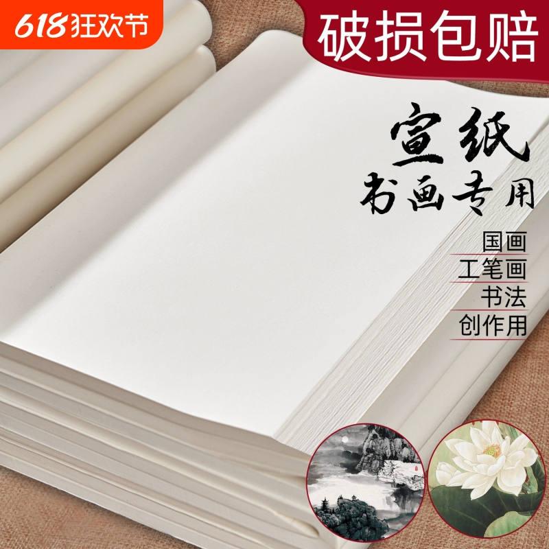 国画宣纸生宣半生熟绘画纸书法专用8k毛笔字临摹纸宣纸4k手工加厚水墨画晕染工笔山水画仿古宣纸小学生专用
