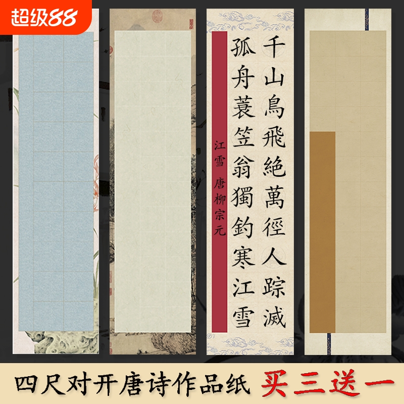 四尺对开微喷蜡染宣纸毛笔书法作品专用纸半生半熟五言七言唐诗考级比赛28格40格56格四开瓦当