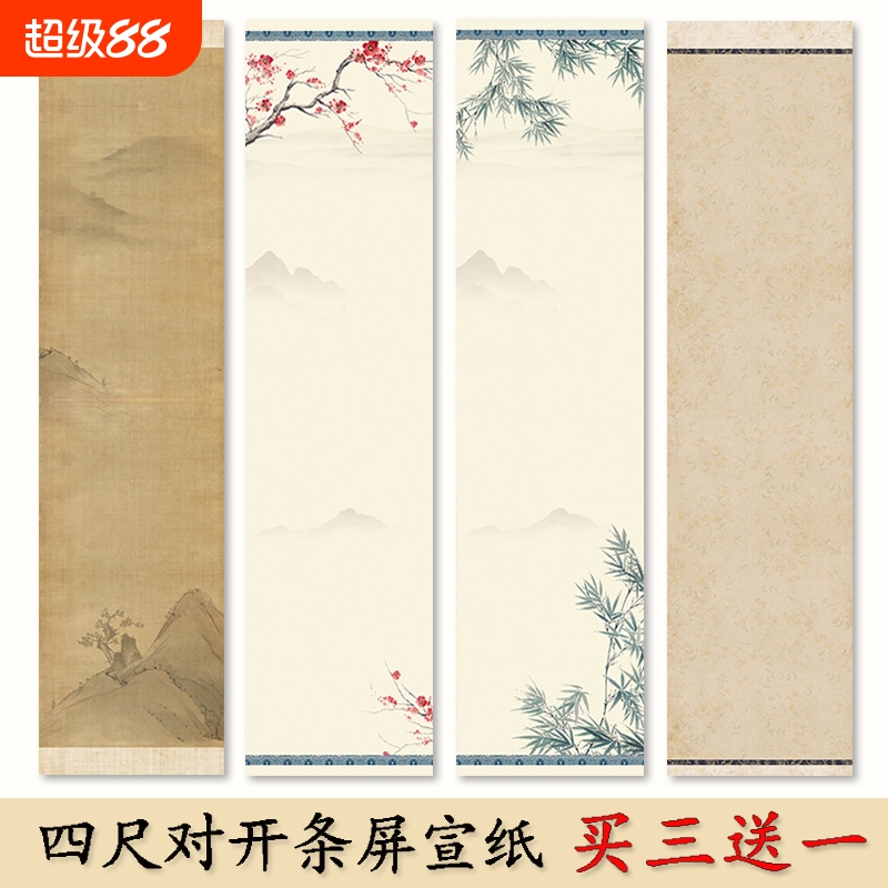 微喷蜡染四尺六尺对开条屏宣纸毛笔书法作品纸国展投稿创作比赛专用纸古风条幅加厚半生半熟装裱印屏半生熟