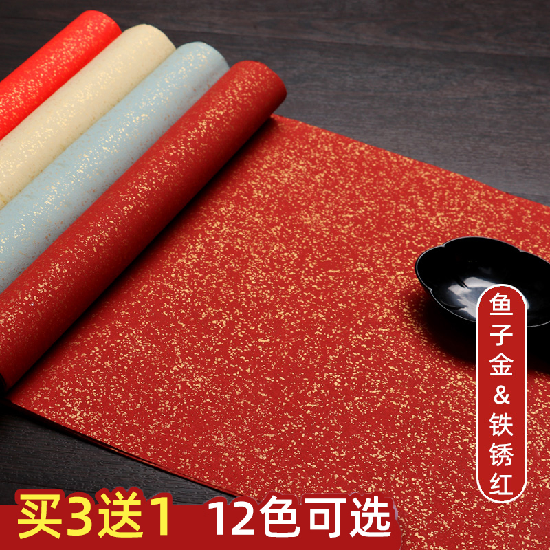 四尺六尺对开整张鱼子金彩色蜡染宣纸洒金鎏金纯色万年红行草书法作品宣纸创作专用国展投稿楷书宣纸半生熟