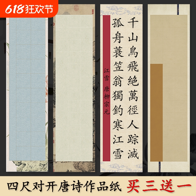 四尺对开微喷蜡染宣纸毛笔书法作品专用纸半生半熟五言七言唐诗考级比赛28格40格56格四开