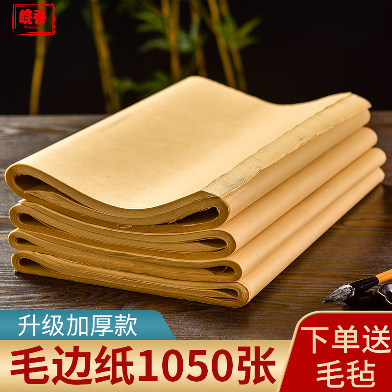 皖香仿古无格毛边纸批发毛笔字纸作品纸书法专用纸宣纸初学者练习纸元书纸加厚纯竹浆纸练毛笔字的纸半生半熟