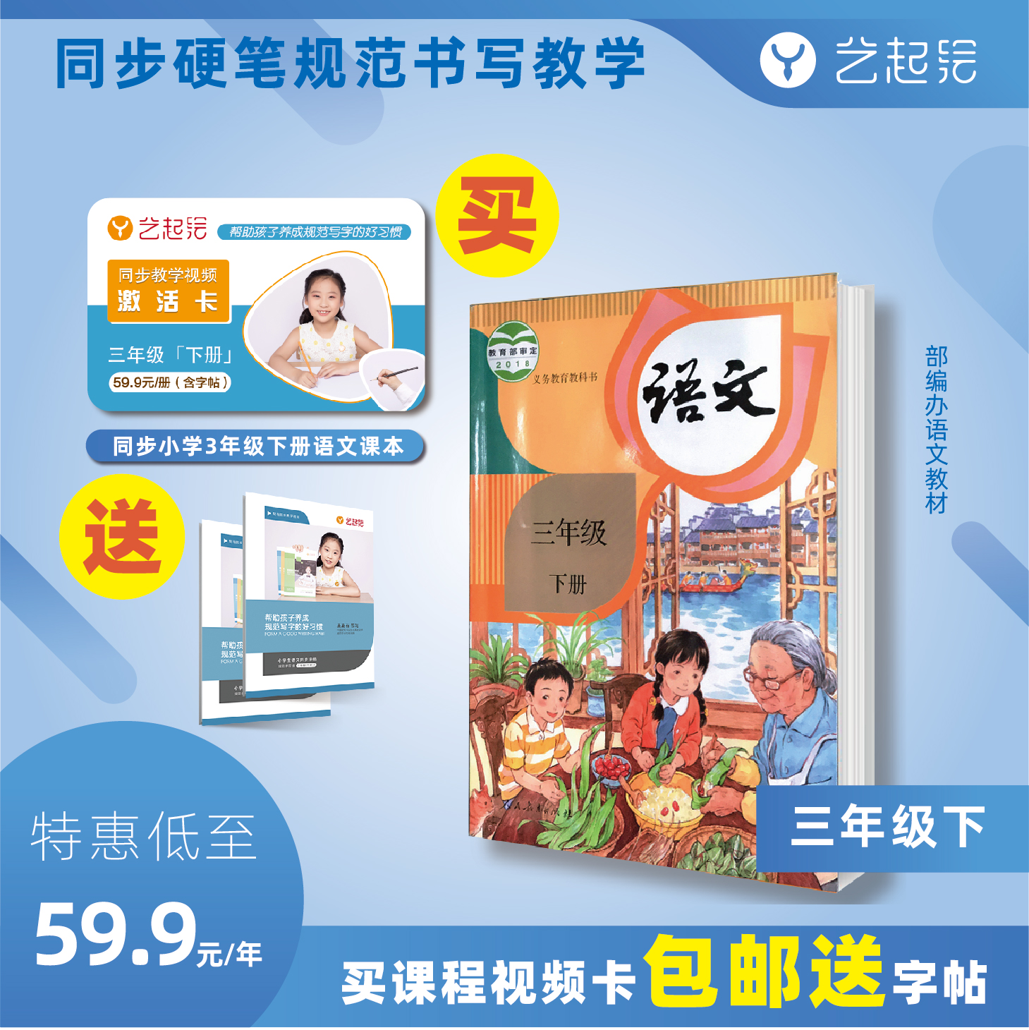 艺起绘三年级下册同步字帖 硬笔楷书 书法字帖小学生 幼儿 铅笔字