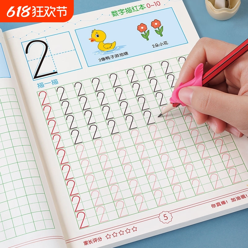 儿童数字控笔训练描红本字帖学前班幼儿园初学者幼小衔接练字本临摹拼音练字帖贴幼儿写字入门中班大班练习册全套3岁一年级小学生