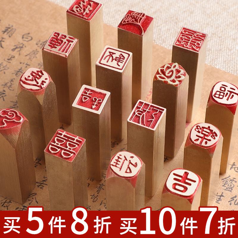 黄铜印章成品闲章定制定刻引首压角硬笔考级书法书画铜章方章随形学生迷你福字小章1厘米古风文创平安吉语