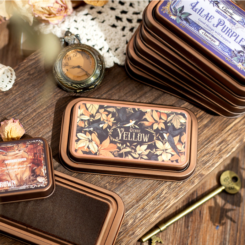 中世纪传说系列复古方形铁盒印台印油日常涂鸦速干印泥印章伴侣