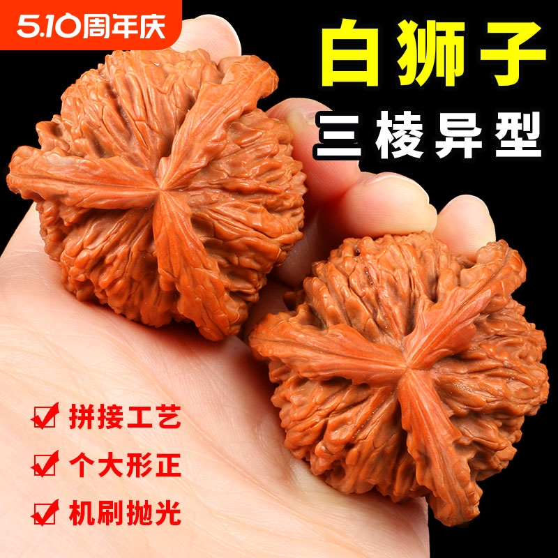 文玩核桃三棱大奔高抛白狮子核桃拼接三道筋机刷包浆核桃文玩三棱