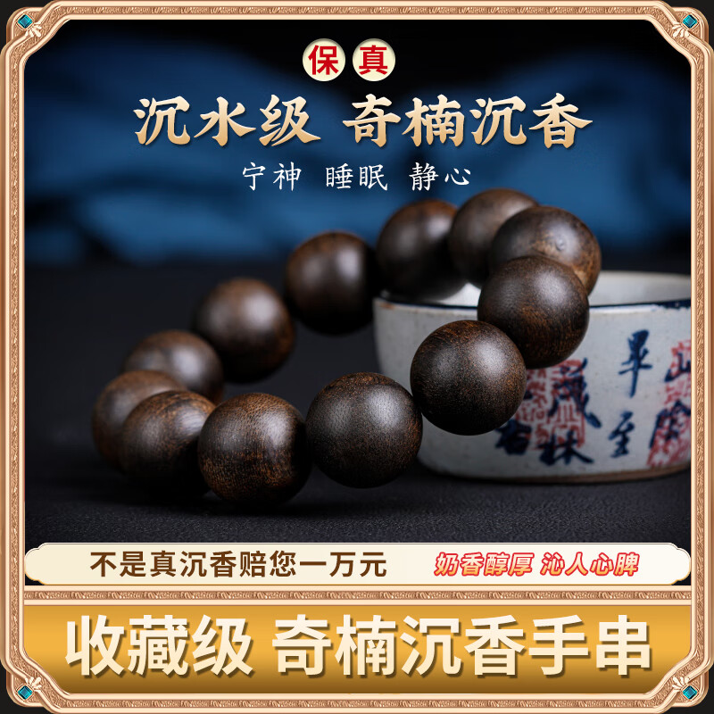 真天然芽庄奇楠沉香手串沉水级棋楠佛珠文玩和田玉手链男女款送礼