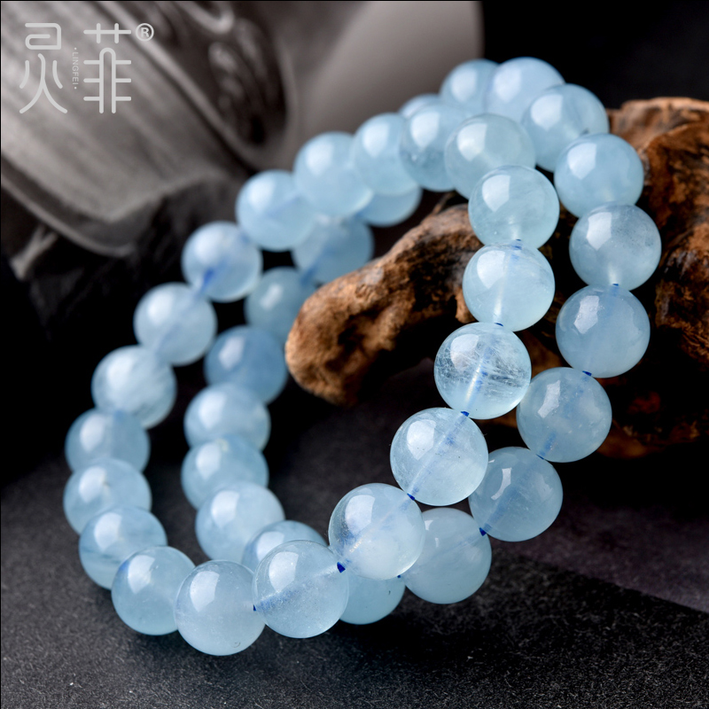海蓝宝手链女冰种魔鬼蓝海蓝宝原石单圈散珠蓝色珠子单圈串珠手串