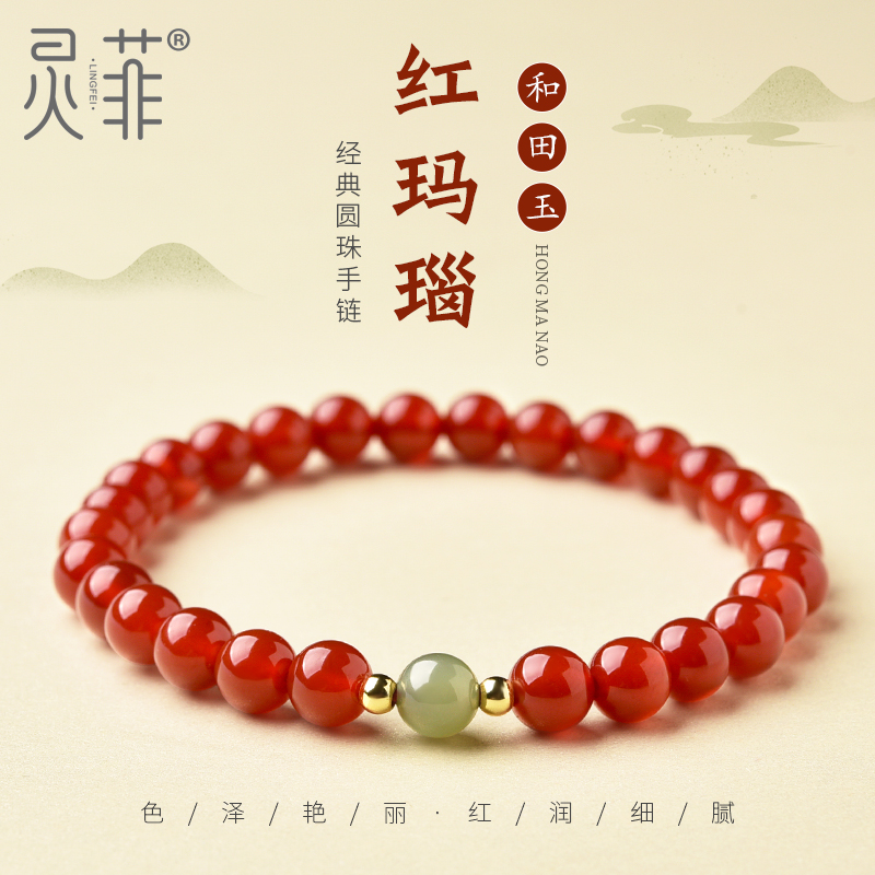 收藏级天然红玛瑙和田玉手链女小众轻奢精致玉髓珠子串珠散珠手串