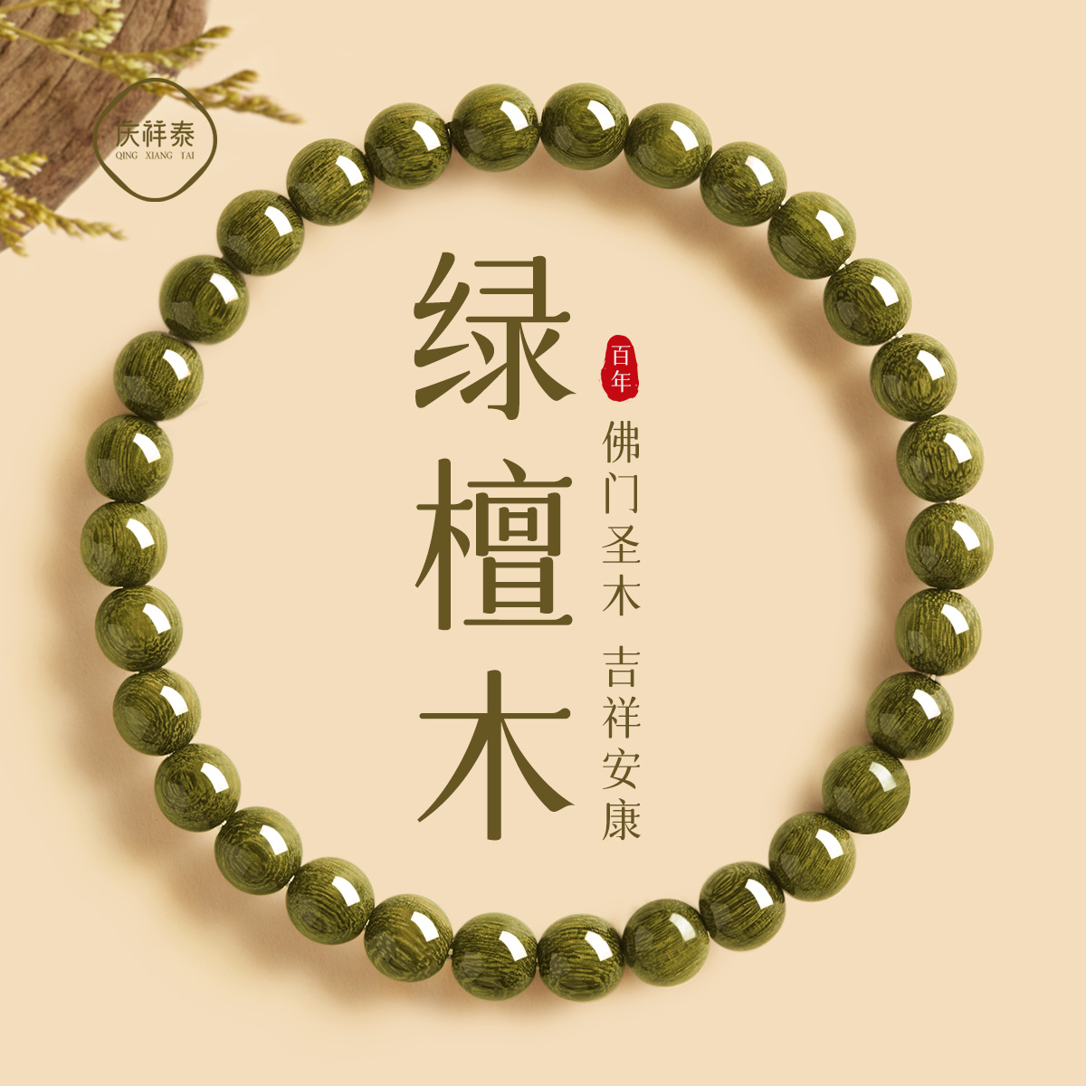 庆祥泰天然绿檀木手串沉香盘玩文玩手链檀香佛珠女款男士木质饰品