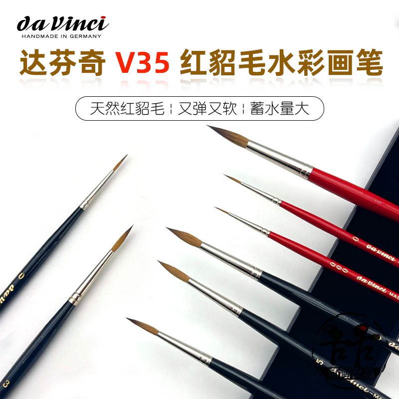 德国工艺达芬奇红貂毛水彩画笔圆头水彩笔貂毛勾线笔上色毛笔V35