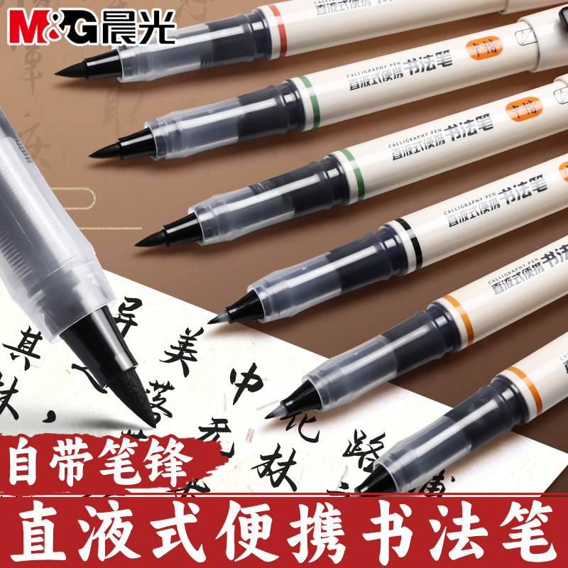 晨光直液式书法笔秀丽笔书法专用软笔书法笔小楷毛笔式钢笔练字帖成人软头练字自带笔锋的秀丽笔极细中楷软头