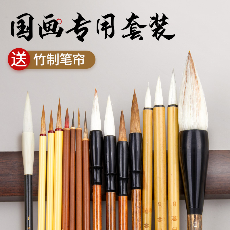 六品堂国画毛笔套装专业级兼毫羊毫勾线白云全套初学者基础入门儿童学生国画工笔画专用书法工具用品颜料画笔