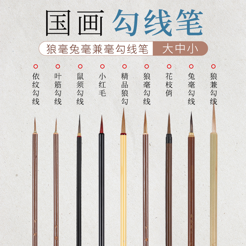勾线笔国画专用狼毫勾线笔工笔国画勾线笔花鸟毛笔套装描线笔描边极细毛笔白描水彩笔专用花枝俏叶筋小红毛笔