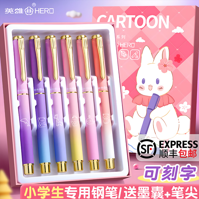 HERO/英雄钢笔ins高颜值P108学生练字专用书法硬笔三年级可换墨囊刻字男生女生小仙女款高档礼盒装正品礼物