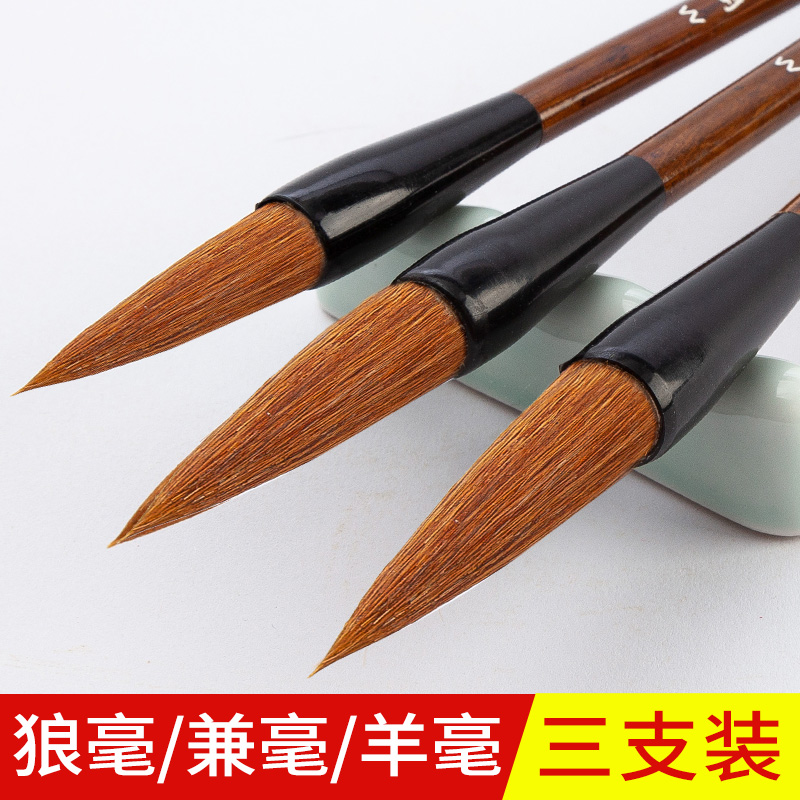 湖羊牌纯狼毫毛笔套装初学者成人练字专用高档专业级书法家大中小号行楷隶篆国画抄经羊毫兼毫正品善琏湖笔