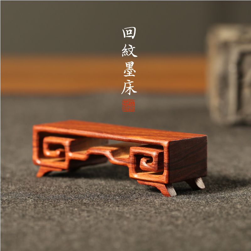 红木墨床 博古回纹 墨台文房用具 仿古黑梓木整料 笔搁双重功能