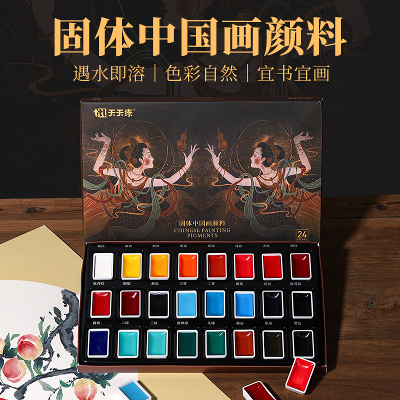 入相文房12色24色固体国画颜料天天练初学者套装初学者用品工具全套古彩中国画水墨画小学生儿童入门用具