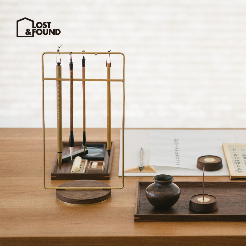 精品失物招领文房四宝毛笔架练字实木黄铜毛笔挂书法用具书房用品