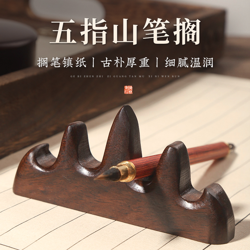 梅林笔庄毛笔挂架笔搁笔山搁置笔架木质桌面新中式书法用具创意摆件学生放毛笔的笔托文房四宝笔台毛笔架子
