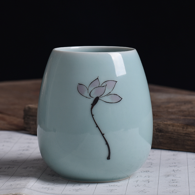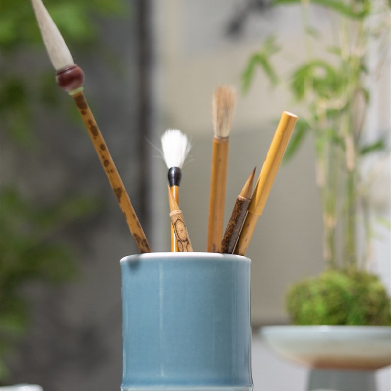 精品龙泉青瓷文房用具创意文具时尚圆形陶瓷精品多功鼓型办公笔筒