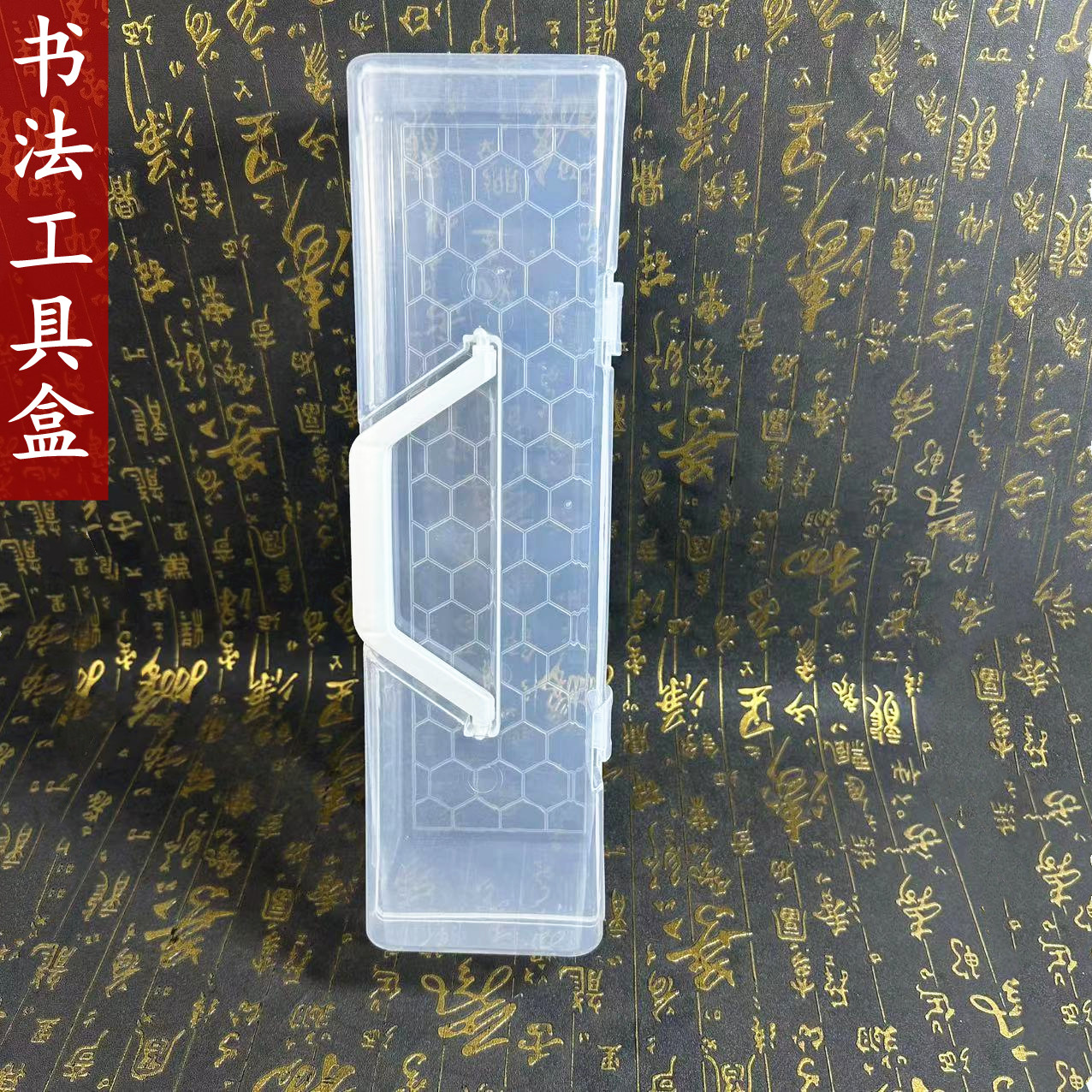 透明书法工具收纳盒带盖美术收纳用具便携毛笔盒防尘学生专用盒子