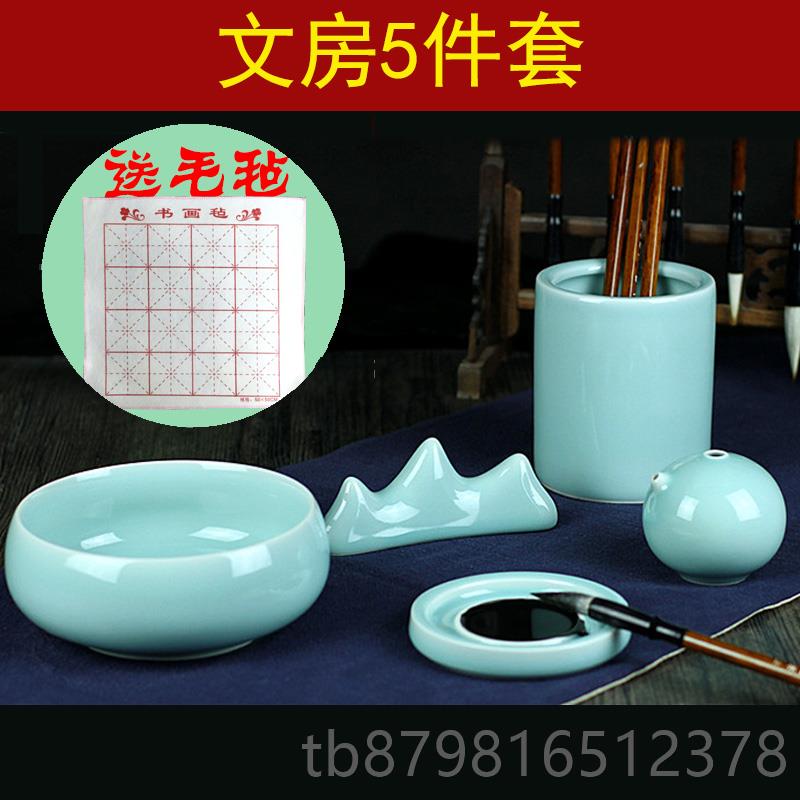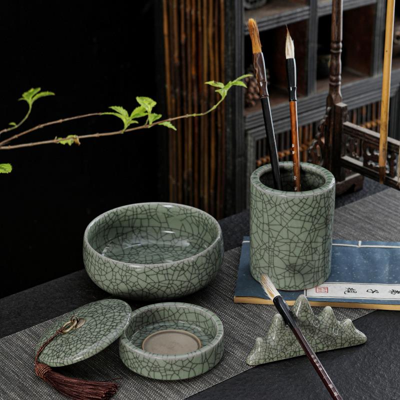 哥窑开片可养文房四宝用品用具套装笔洗烟缸砚滴笔架笔筒练习书法