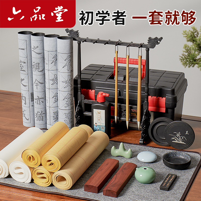六品堂毛笔书法专用初学者套装软笔入门专用儿童小学生三年级练毛笔字狼毫兼毫文房四宝笔墨纸砚工具收纳盒