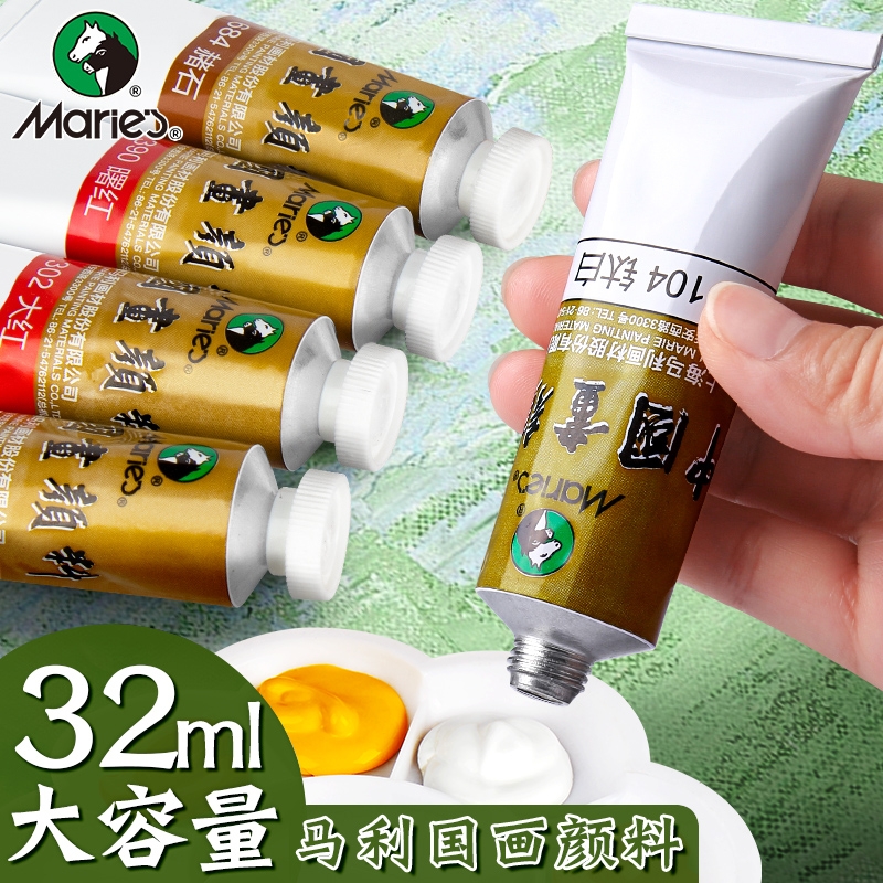 马利牌国画颜料中国画专用颜色单支32ml玛丽工笔画藤黄花钛白初学者大瓶画画旗舰店水墨画赭石24色12色花青